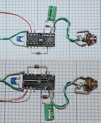Componets soldered to an 18 pin DIP socket.